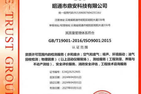 2003年11月10日,昭通市鼎安科技有限公司成立,初始主要從事第三方安全工程技術服務,經多年運營,發(fā)展為多專業綜合科技平臺,為社會提供多種專業技術服務工作。 現公司注冊資金為1200萬元,公司法定代表人:毛衛(wèi)旭。公司主要業務:安全評價、安全標準化評審、安全工程技術服務;環(huán)境監(jiān)測、職業衛(wèi)生檢測、檢驗;法律訴訟及非訴訟服務;司法鑒定、固定資產投資項目節(jié)能服務;工程咨詢;工程測量測繪;安全教育培訓等。是安全生產服務、安全教育培訓機構,也是環(huán)境監(jiān)測和職業衛(wèi)生服務機構,同時也是綜合的檢測檢驗、綜合科技平臺服務機構。多年來為公、檢、法、司、軍、警、海關、仲裁、安監(jiān)、工礦商貿企業、社會團體及個人提供多專業技術服務。